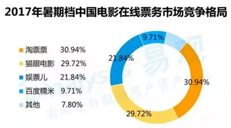 猫眼作为国内最早涉足在线电影票务的公司,市场份额一度高达70%以上。随着BAT先后通过微票儿、淘票票、百度糯米进入在线票务领域,猫眼的市场份额从70%降到了30%左右。尤其是在今年暑期档的互联网宣发大战中,猫眼亦被淘票票和微票儿甩在身后。