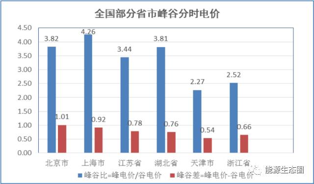 从上表可以看到北京市、上海市、江苏省、湖北省这几个城市电价差分别在1.1元、1.01元、还有0.92元还有江苏省的0.78元,湖北省的0.76元。