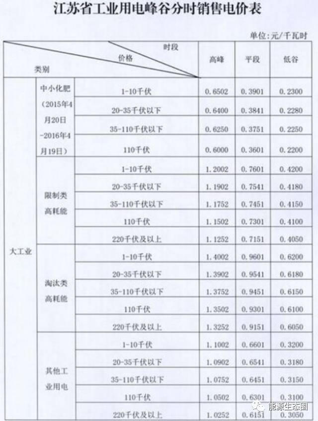 峰谷电价差是大家比较容易接受的经济效益,上图是江苏省大工业电价的分时电价政策。