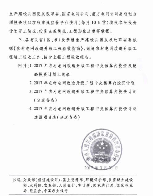 发改委下达农村电网改造升级工程2017年投资计划