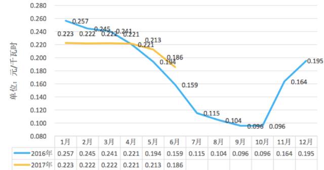 2016年、2017 年上半年云南电力市场化交易售方成交电价