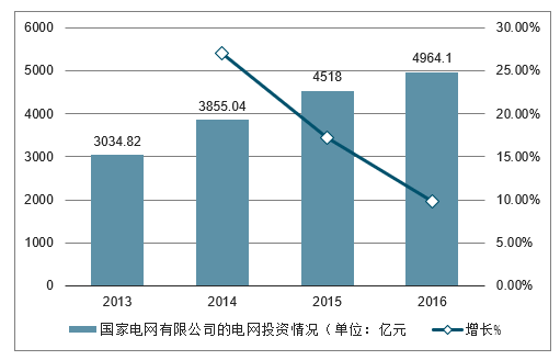 2013-2018年中国国家电网有限公司的电网投资情况(单位:亿元,%)