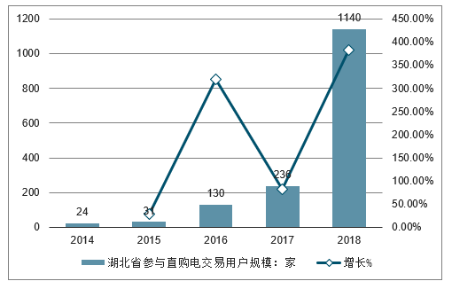 2014-2018年湖北省直购电交易用户规模及增长情况