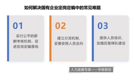 针对国有企业在开展定岗定编工作中常出现的几个问题,华恒智信在长期咨询工作中,总结过去的行业经验,提出了一些针对性的措施,来帮助国有企业更好地进行定岗定编工作。