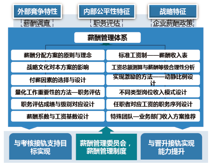 华恒智信的薪酬体系主要设计十二个方面,从企业的薪酬管理制度到关键岗位的激励模式。因此该体系的应用与实施可以直接实现员工的可见收益与企业的发展收益高度结合,实现两者真正利益共同体的目标。