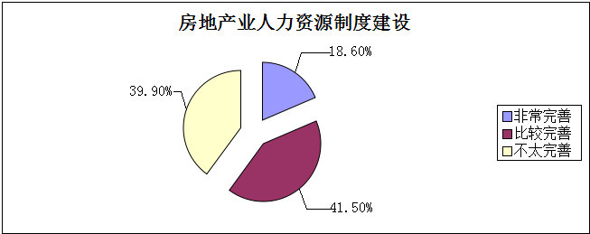 调查研究表明:大部分房地产企业人力资源建设存在不足,39.90%的企业人力资源制度不够完善,只有18.6%的房地产企业的人力资源制度是完善的。
