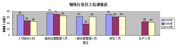 通过相关数据分析可知,我国钢铁行业对员工的培训力度相对薄弱,对员工培训的经费开支相对较少,对基层员工的培训时间偏低。
