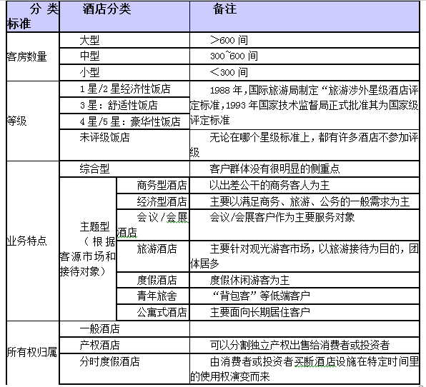 (一)酒店分类