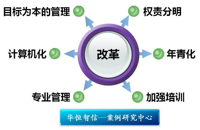目标为本的管理;权责分明;计算机化;年青化;专业管理;加强培训。