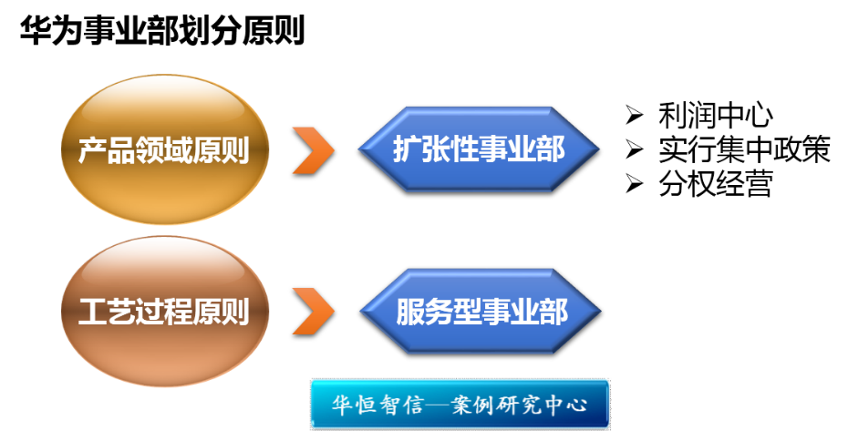 在1998年定稿的《华为基本法》中,第四十四条明确提出:公司的基本组织结构将是一种二维结构,即按战略性事业划分的事业部和按地区划分的地区公司。事业部在公司规定的经营范围内承担开发、生产、销售和用户服务的职责;地区公司在公司规定的区域市场内有效利用公司的资源开展经营。事业部和地区公司均为利润中心,承担实际利润责任。