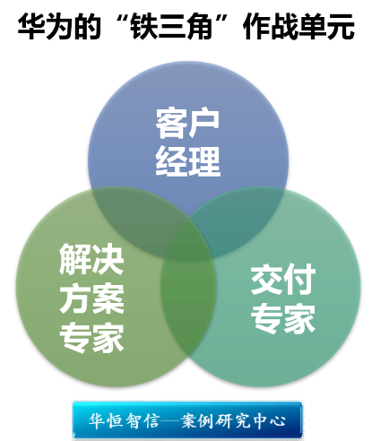 在华为北非分部,围绕做厚客户界面,员工成立了以客户经理、解决方案专家、交付专家组成的工作小组,形成面向客户的“铁三角”作战单元。铁三角的精髓是为了目标,而打破功能壁垒,形成以项目为中心的团队运作模式。华为的先进设备、优质资源,应该在前线一发现目标和机会时就能及时发挥作用,提供有效的支持,而不是拥有资源的人来指挥战争、拥兵自重。这为华为组织变革和分权提供了一条思路,就是把决策权根据授权规则授给一线团队,后方仅起保障作用。相应的流程梳理和优化要倒过来做,就是以需求确定目的,以目的驱使保证,一切为前线着想,共同努力地控制有效流程点的设置,从而精简不必要的流程,精简不必要的人员,提高运行效率,为生存下去打好基础。