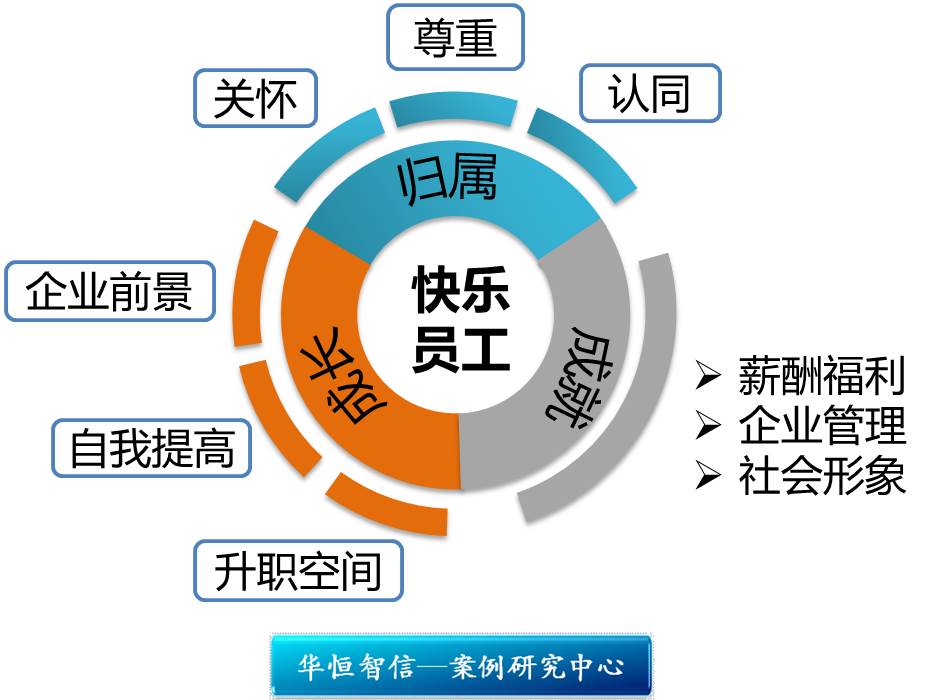 成就。成就感就是员工在工作中找到展示自己能力的舞台并获得相应公平和满意回报,拥有良好工作环境和社会认同。这里面包含了合理的薪酬福利,公平公正的企业管理和企业在社会中的良好形象三个方面。