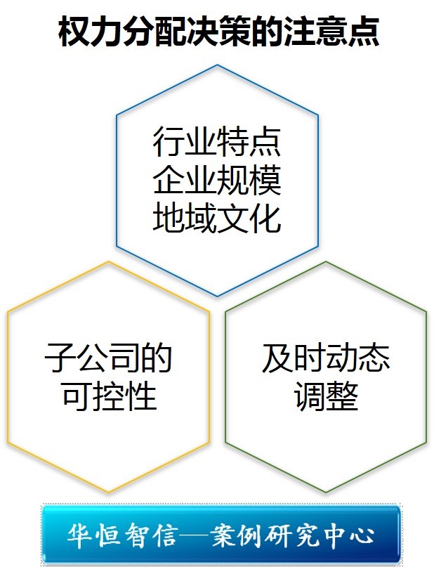 企业在做权力分配问题的决策时,一是要考虑自身的行业特点、企业规模以及地域文化因素;二是要确保子公司的可控性,将影响长远计划的经营权集中在母公司;三是要注意根据企业发展阶段、高层董事层、外部环境等因素的变化,及时、动态调整。