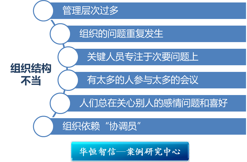 对于一个企业来说,最严重的问题之一莫过于组织“结构不当”了。在德鲁克的著作中,他给我们描述了“结构不当”的几个症状,帮我们系统梳理了这些问题: