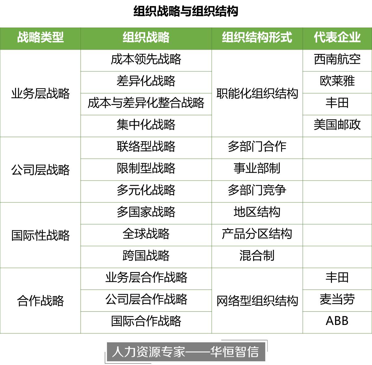要做到“因材施教”,管理者首先要明确自身的组织战略和组织结构性质,组织战略规范着组织结构,不同战略指导下所设计实施的组织结构是不同的。下面,我们将以图表的形式向管理者介绍几种常见的组织战略及相应的组织结构形式。