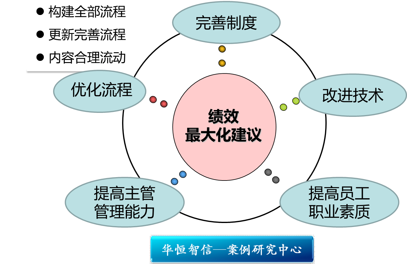 1、优化流程 检查和改进流程,检查流程首先应参照原有的流程设计检查:是否真的按原来的流程设计构建了全部流程系统;其次根据实际情况更新和完善流程,使流程能够与时俱进,最大限度地促进企业工作效率的提升;最后,检查流程上流动的内容是否正确合理地流动。
