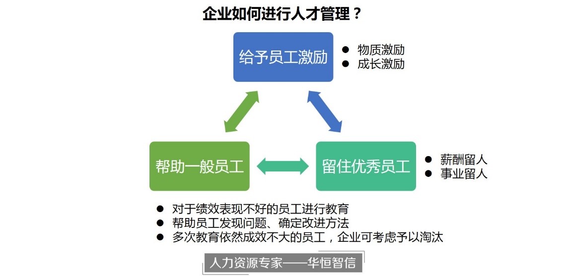 企业应该重视对人才的管理,使优秀人才能够不断进步,从而推动企业进一步发展。那么,企业在人才管理中应该从哪些角度入手,可以采取哪些策略?对此,华恒智信分析员提出以下几点供广大企业参考: