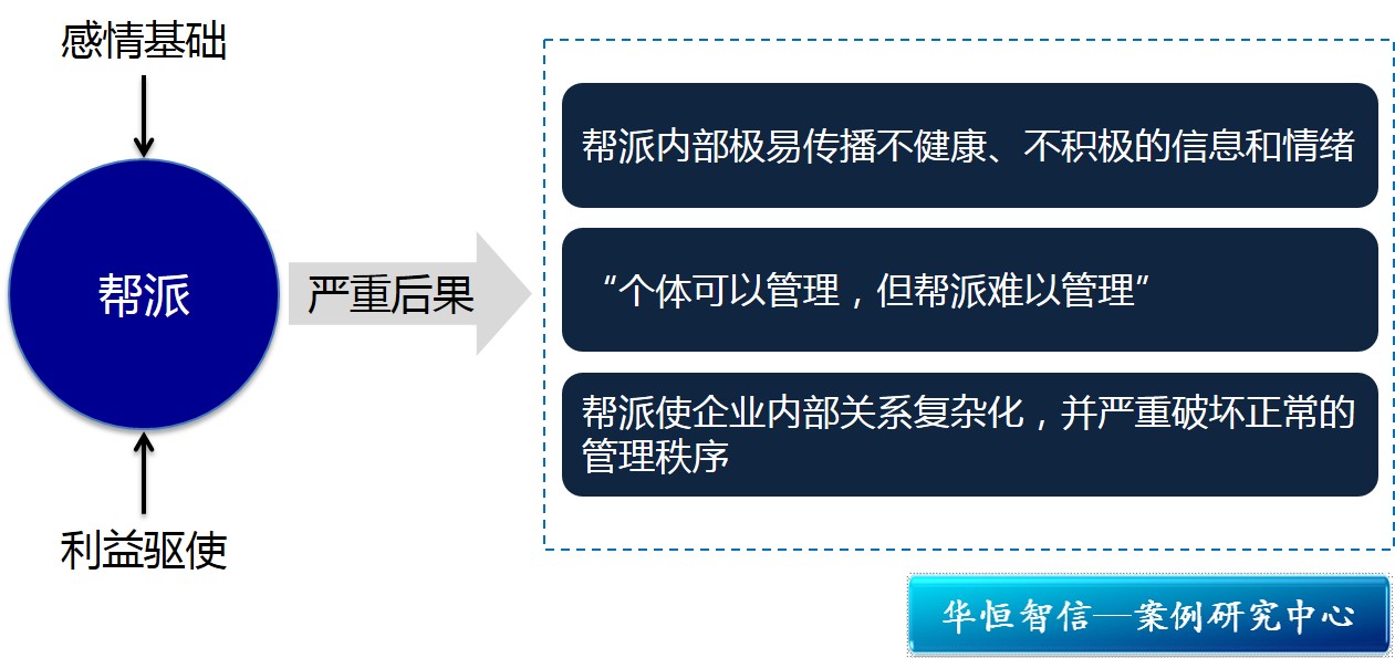 “帮派”对管理危害极重,具体表现在三个方面: