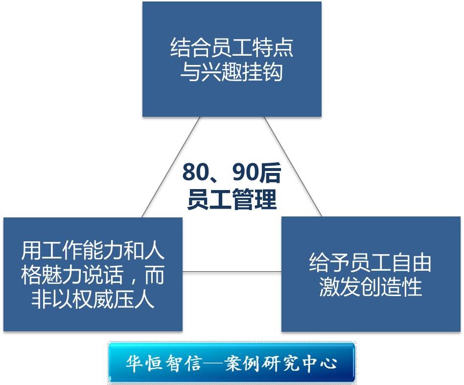 在今天,80、90后一代逐渐成为了企业发展的生力军。由于时代的原因,80、90后身上有着与以往员工很不相同的地方。因此,企业在管理80、90后员工时不能再按照传统的方法,而是要结合80、90后一代的特点,开发出新的管理方式。对于现代企业如何做好80、90后员工的管理工作这个问题,华恒智信专家提出了以下几点建议: