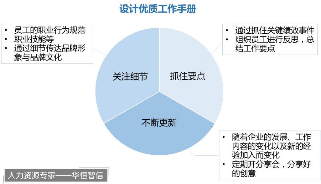 第三,不断更新。一本优质的工作手册并不是静止的、僵死的条条框框,它会随着企业的发展、工作内容的变化以及在实践中不断摸索总结出的新经验而进行相应的调整。因此,一本优质的工作手册不是一蹴而就的,需要建立在大量的工作实践基础上,结合员工的工作反馈和创新,顺应情况变化,不断改进和更新,从而企业及其员工才能获得进步和成长。例如,企业可以结合自身情况定期以开分享会的形式,组织员工分享各自在工作中产生的好创意新想法,并予以相应的奖励。