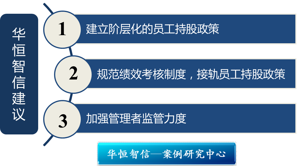 第二,规范绩效考核制度,将其与员工持股政策接轨。绩效考核是公司检测员工工作质量,合理进行薪酬分配的依据。企业需要根据其不同阶段的目标进行绩效考核的设计、实施和反馈,既可以规范员工的工作内容,又可以提高员工的工作效率。企业将绩效考核与员工持股政策接轨,一方面为员工持股的阶层化提供依据,另一方面将给每个员工前进的目标从而实现二次激励。