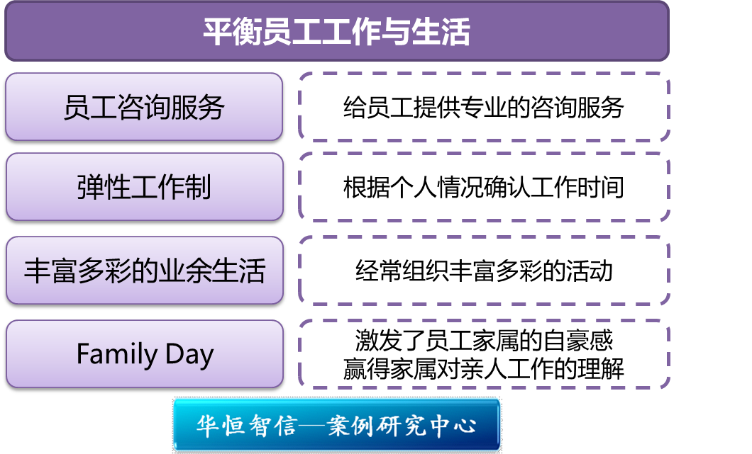 公司内部也配备了具有博士学位的心理与健康专家,专门协助员工平衡工作与生活。