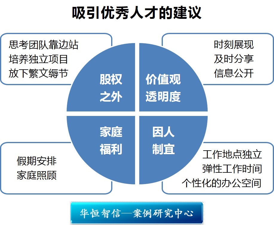 吸引人才有特色。结合企业对于人才的分析,找到有企业特色的人才管理方法。谷歌的20%时间、Netflix的弹性工作时间和投资公司产品或服务、Treehouse LLC的一周四天工作制都是比较典型的企业特色。特色可以是多样的,文化、福利、工作地点、工作时间等方面均可。