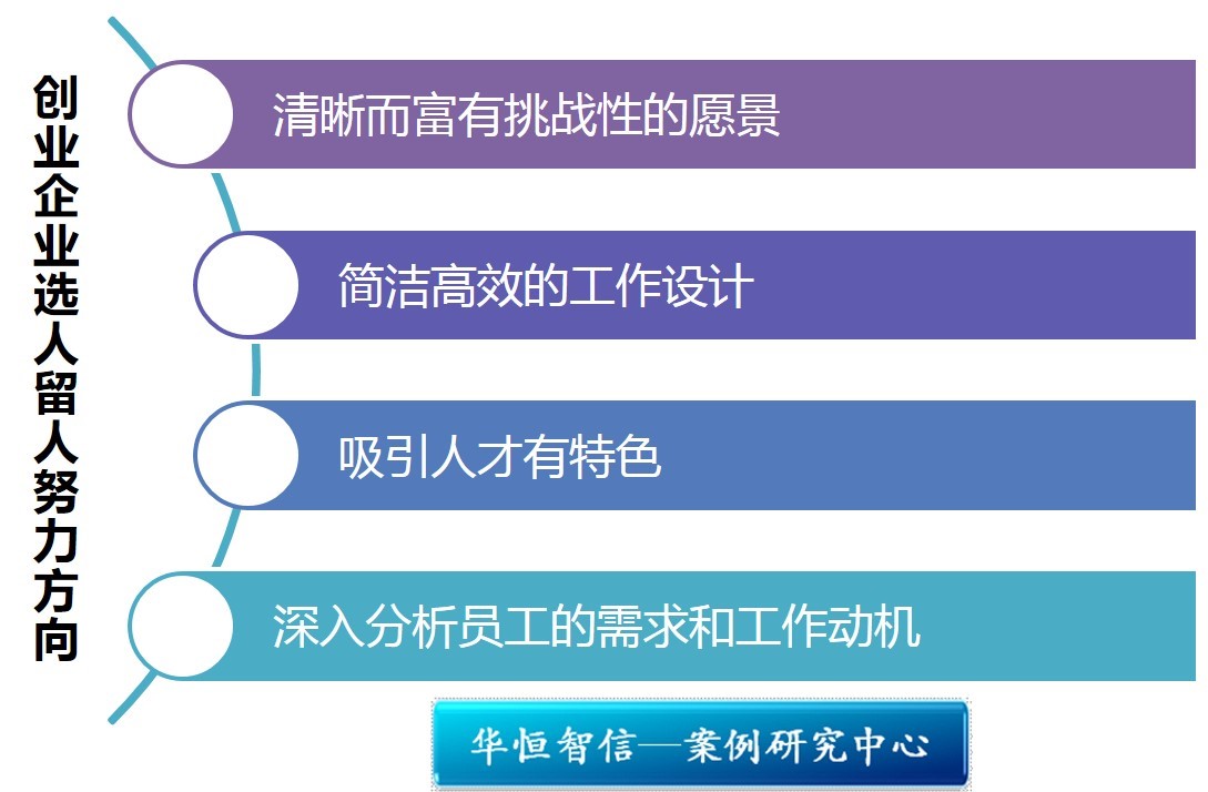 对于创业公司来说,公司的发展前景尚不明朗,人力、物力和财力相对来说比较匮乏,这也使得创业公司在人才的招募和保留等方面面临巨大的挑战。创业企业在选人和留人方面需要注意哪些问题呢?华恒智信分析员通过查阅相关资料,同时结合一些作者的观点,认为应该在以下几个方面努力: