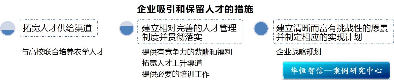总体而言,农业企业人才短缺问题并不是一个在短时期内得到解决的事情,需要企业进行不懈的努力,完善企业的管理制度,开发自身的人才渠道,逐步做好人才吸引和保留的工作。