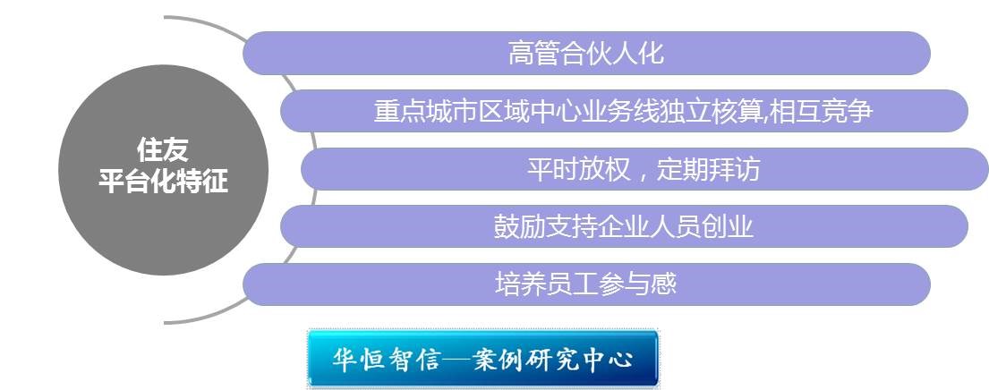 住友把握中高层管理者渴望自我实现的需求,将自己定位为发展平台,将高层管理者以合伙人方式培养,为激励高管,留住高管努力。如今资讯发达,市场机会多,有能力的高管自然会“蠢蠢欲动”。与其让高管出走创业,发生人才流失的情况,为什么不直接鼓励高管在公司的帮助下创业呢,让自己的公司成为“生产好公司的公司”呢?平台化是一个很好的思路,典型企业如海尔也正在对此尝试。但平台化过程中也涉及应对高管角色转变后企业日常管理能否正常,企业资源如何配置的问题,还需要多加思考。
