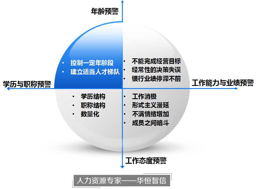 近年来传统银行遭遇困境,民营银行、互联网金融等新金融业态给其造成很大的竞争,造成行业内人才流失严重。传统银行只有积极求新、求变才能更好地应对外来挑战。那么传统银行应该如何防止核心人才流失呢?华恒智信认为首先要建立人才的预警机制,一般来说可从以下几个方面进行建立: