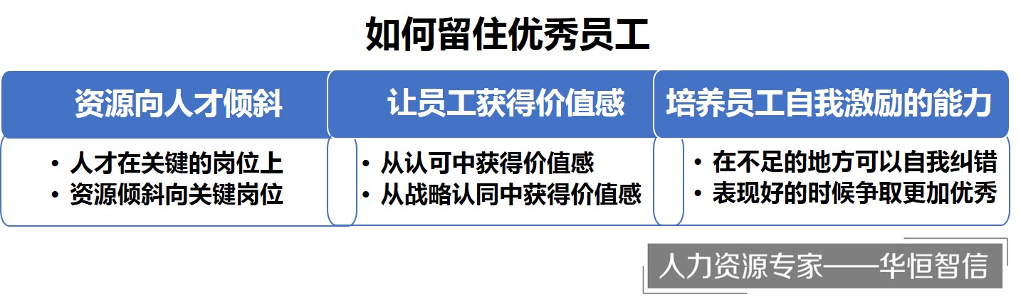 根据战略人力资源管理理论,企业根据战略明确关键岗位上的关键人才,企业应当审视优秀的员工是不是在充分发挥他们作用的位置上工作,同时向关键岗位倾斜自己的资源政策。也就是说,企业只有将优秀员工放到关键岗位,让他们发挥自己的才能完成有挑战的任务,才可以激发他们的积极性。同时企业要满足员工进步的需求,可以在资源上支持他们,比如:更优越的薪酬待遇,更好的进修机会等等。