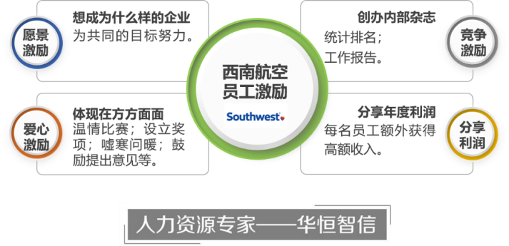 在现代化企业中,随着人力资本的作用越来越重要,“以人为本”的管理理念被证明能够更有效地吸引高素质员工,激活在岗员工的创造力、生产力,为企业的发展赋能。公司的人才激励做得不好,往往会出现以下问题:员工消极怠工、工作氛围紧张、流失率高等等。在如何实践人才激励上,以美国西南航空公司的员工激励方式为例,华恒智信的分析师总结出了几个关键点: