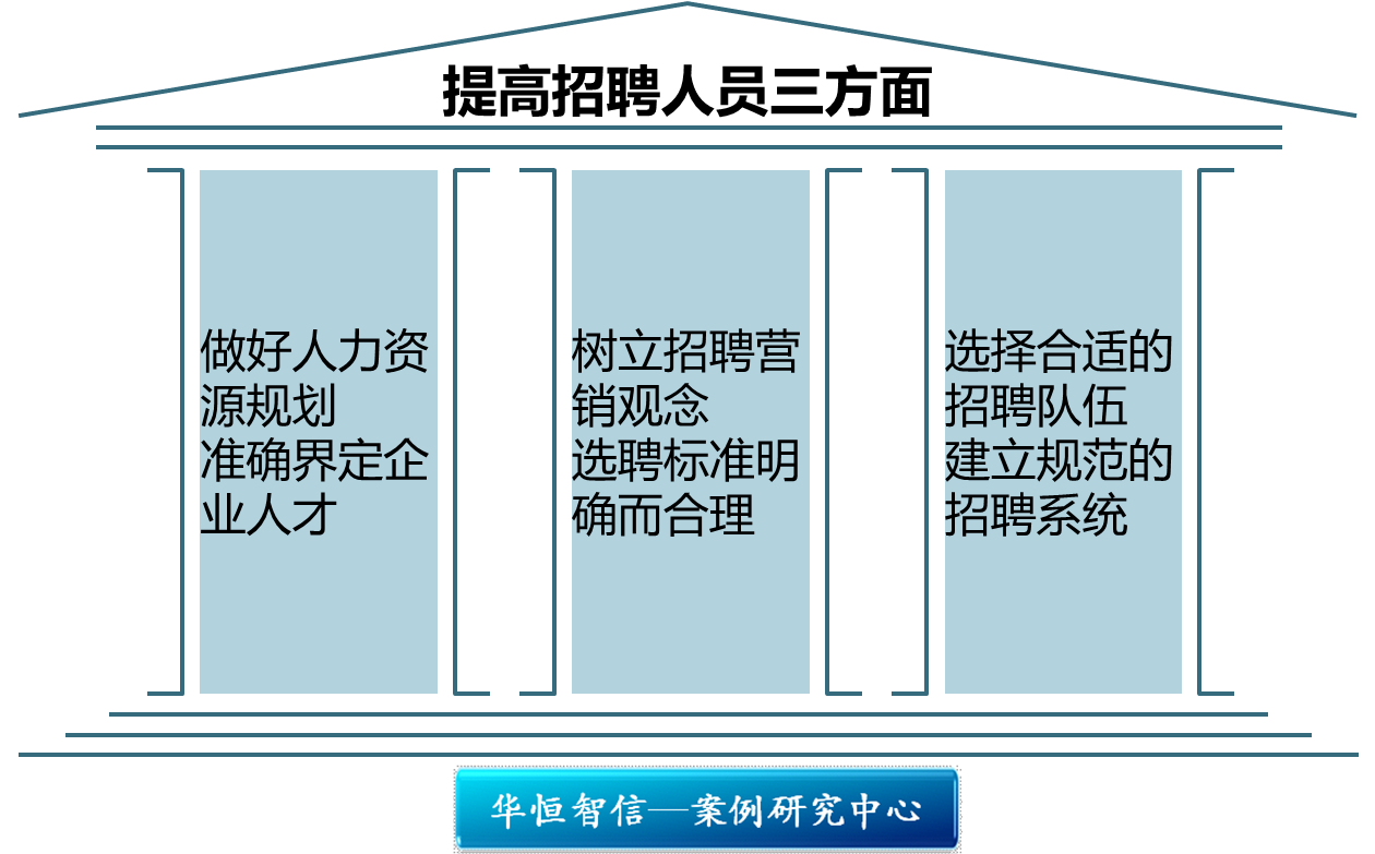 使招聘流程规范化、流程化,从确定招聘需求、发布招聘信息、选择评价手段、寻找合适的招聘人、背景调查、告知聘用结果、对招聘工作本身的评估、新进员工的追踪服务等各个步骤上下工夫。