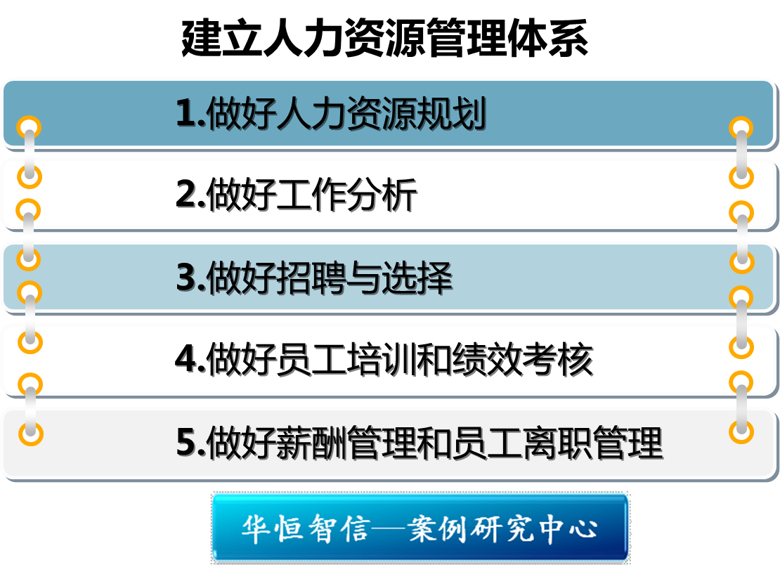 从上面的失败原因分析,可以得到这样一个结论:这个公司没有从外界招到合适的员工是因为它没有一个科学的人力资源管理体系造成的。建立一个科学的人力资源管理体系需要注意以下几个方面: