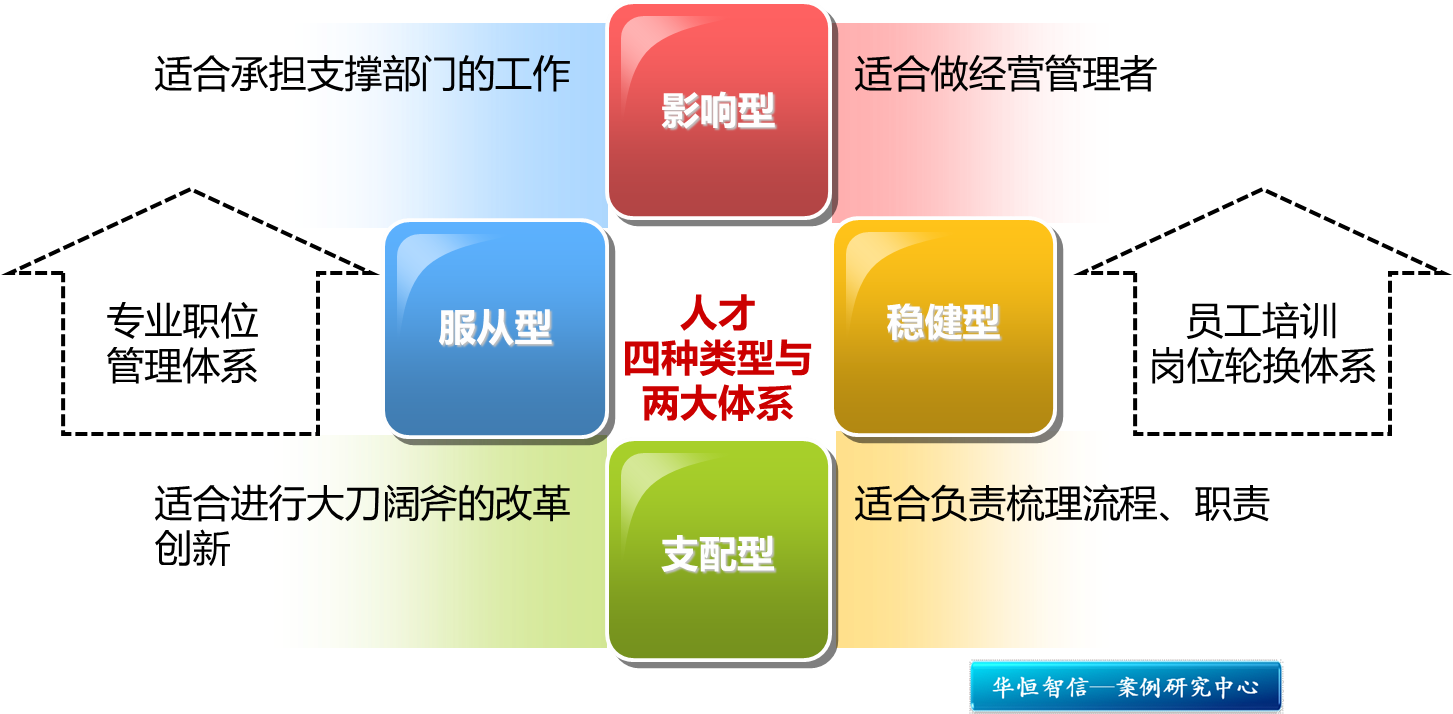 青啤把人才分为四种类型:影响型、支配型、稳健型、服从型。把不同特点的人安排在不同的岗位上才能将员工的才能发挥到最大化,比如,富有人格魅力的影响型人才适合做经营管理者;支配型的人才比较果断、强势,适合进行大刀阔斧的改革创新;稳健型的人才适合负责梳理流程、职责等;服从型的人才适合承担支撑部门的工作。而对于那些“不合适的人”,青啤有系统的培训体系给予支持,对于考评结果证实不适合该岗位工作的,会被调配到“待岗中心”。青啤的“待岗中心”创建于2003年,实施“两级待岗制”。