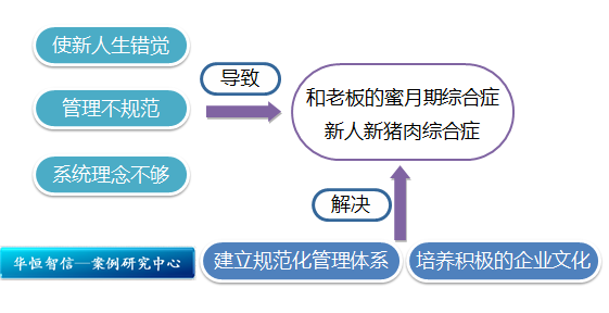 以上这两种现象在企业中或多或少的存在,尤其在管理不规范的中小企业中比较突出,管理规范的大企业则相对较少一些,第一种现象有些人戏称为“和老板的蜜月期”过后的综合症;第二种现象则相应的被称为“新人新猪肉”综合症,这两种现象的存在对企业的发展都极为不利,都会造成人才浪费或人才流失的问题。