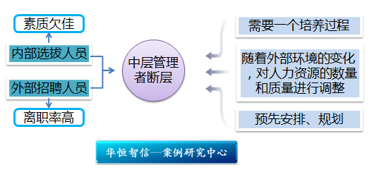 在案例中,远翔公司之所以出现中层管理者断层,主要原因其中层管理人力资源层面上缺乏必要的规划。如果内部提拔的中层管理人员缺乏必要的管理技能,一有人员退休,则难以找到称职的继任者,而对外部招聘又难以留用等一系列问题。
