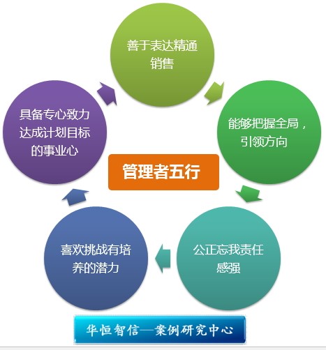 以上我们称之为“管理者五行”的特质,类似中国古代名将岳飞所奉行的将者五道:仁、信、智、勇、严。其实在中国兵书圣经之称的《孙子兵法》中所论述的为将之道:将者,智,信,仁,勇,严。而岳飞却将次序做了如下调整,将“仁”字放在第一位。一字之差,显现出两大军事家截然不同的作战思想、带兵之道。孙子着眼于军事艺术,战胜为上,故认为军事的真理是以智为先;而岳飞则把军事的真理看作是救助民众广行仁慈的手段,因此以仁为先,以信次之。