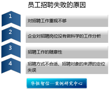 纵观各招聘失败的案例,华恒智信认为是如下原因导致员工招聘失败:
