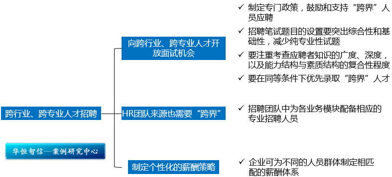 企业在应届生起薪、调薪幅度、管理序列和技术序列晋升和薪酬福利项目等方面均可设计灵活的策略,量体裁衣定制化地满足了不同“跨界”人才的心理需求,并提升市场竞争力。
