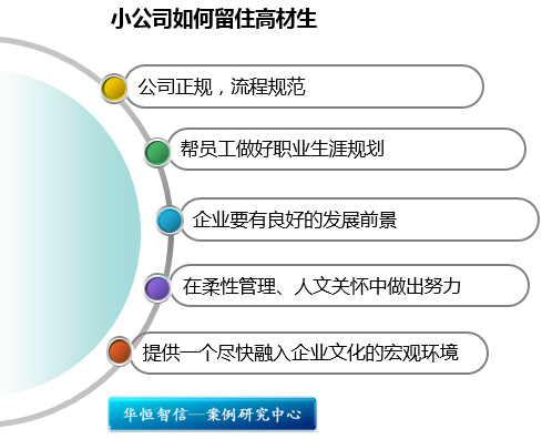 应聘者进到公司以后,他们所关心的是,这个公司是否可以实现从学生到“社会人”的转变。如果他很被公司重视、信任,我想他会把握眼前的机会,愿意跟公司一起去成长,进而为公司创造价值。如果一个应届生进到公司,HR把他丢到用人部门,用人部门觉得这个新来的员工啥也不懂,什么也不交给他做,那这是留不住人才的。总之,做好新员工入职的一系列相关的跟踪培训、反馈,帮员工做好职业生涯规划都是小公司留人最基本的东西。