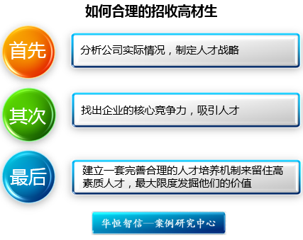 首先,分析公司实际情况,制定人才战略。公司空缺岗位需要什么样的人才,需要具备哪些能力和素质,有没有必要招收高材生?并不是最优秀的就是最合适的,人岗匹配是最重要的。所以,不应片面追求“高材生”这个光环,导致大材小用的浪费人才问题。从实际需要出发制定人才发展战略。明晰了这点,接下来:
