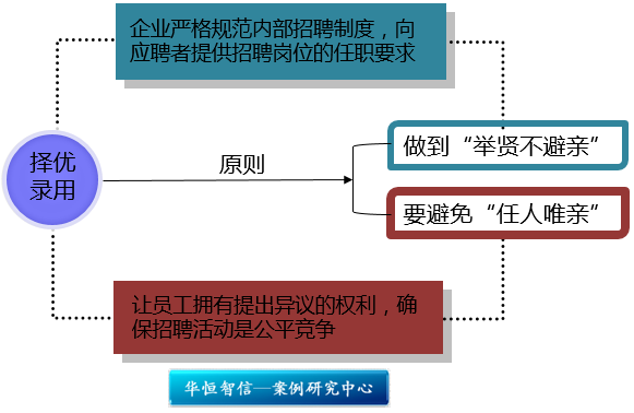 华恒智信认为,企业进行内部招聘,需要注意遵循“择优录用”的原则。一方面,要避免“任人唯亲”;另一方面,也应做到“举贤不避亲”。而这就要求企业严格规范内部招聘制度,向应聘者提供招聘岗位的任职要求。企业应该明确空缺岗位的职责、任职资格及该岗位招聘所面临的挑战,让意向应聘者能从中了解准确的招聘要求,并与其自身情况进行对比。这样做可让部分不符合招聘要求的应聘者自行“筛选”,以节约招聘成本。同时,有了对应聘该职位所必须具备的条件的硬性规定,并在选拔过程中持之以恒地坚持,让员工拥有提出异议的权利,才可以确保该招聘活动是公平竞争的,从而保证内部招聘有序开展,保证内部招聘活动的公平性与合理性。