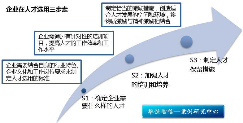 华恒智信认为,企业在人才选用问题上,需遵从“三步走”的战略: