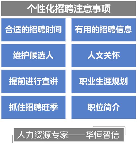 保洁在针对大学生和MBA的招聘中,采用了一种新的、个性化的招聘模式,通过更精准的人才定位和更个性化的人才选拔模式,获得了中高端人才的喜爱,节省了企业的招聘成本,吸引了合适的人才。当然,这种个性化的模式具有其适用条件,如企业的名声、招聘对象的水平和重要程度等。华恒智信认为,在企业引用保洁的个性化招聘模式过程中,可以学习借鉴以下两点。
