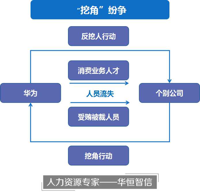 因为不断“挖角”,华为和乐视、酷派不断有火药味。2016年5月,当时有传闻称华为针对乐视“挖角”华为消费者业务的人才问题,专门成立了“打乐办”,华为消费者业务CEO余承东对此进行了否认,但余承东也提到:“的确有个别公司特意猛挖我们消费者业务的人才,甚至也把部分贪污受贿被我们开除掉的人员招聘过去了,作为回应与防御,(华为)也在思考反挖人行动。”