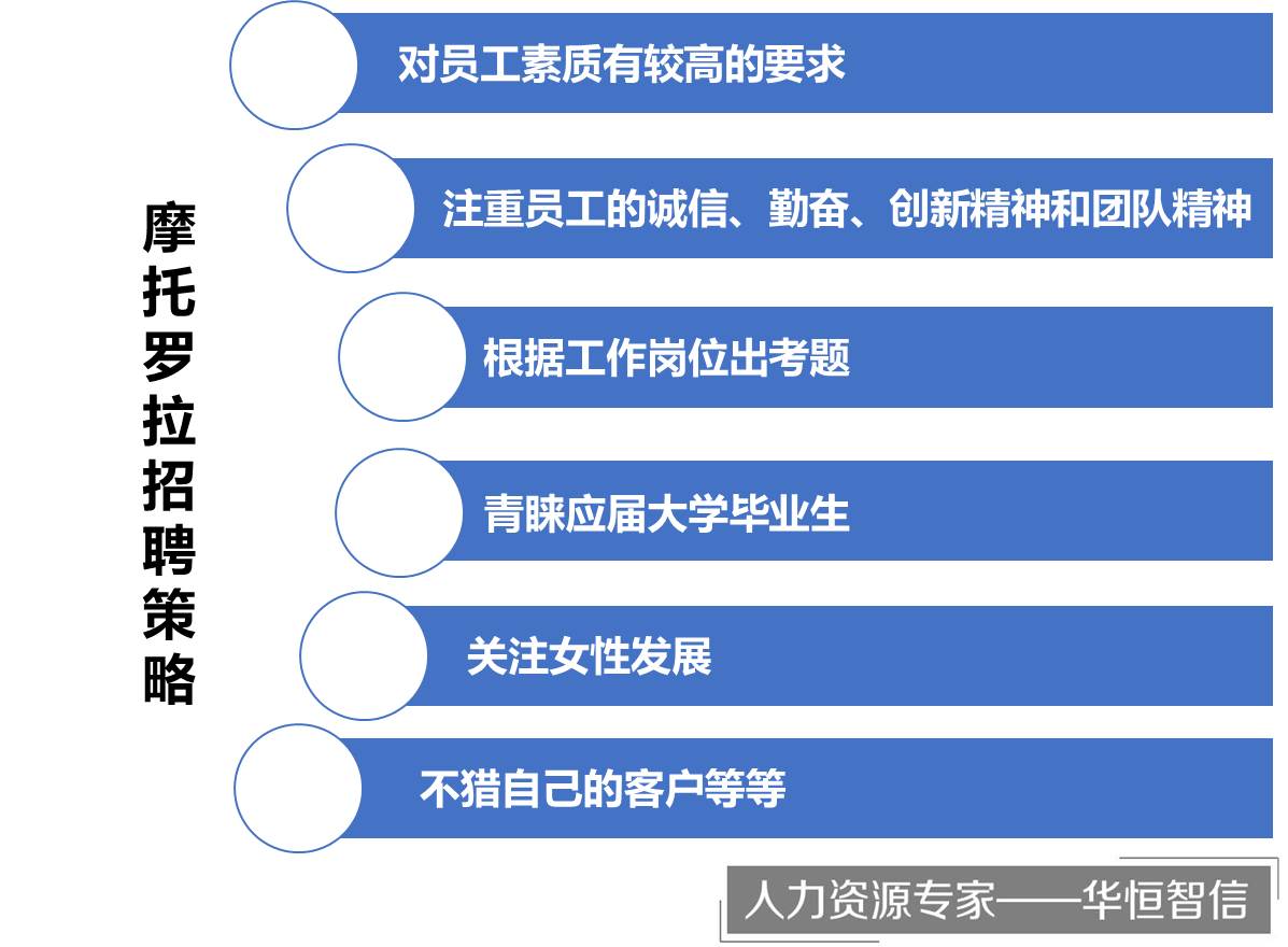 摩托罗拉的招聘始终以“既要发展自己,又要发展别人”为理念,招聘的整个过程秉持开放、效率、公平的原则,使得摩托罗拉不仅为自身配置到了适合自身企业文化的员工,也在招聘过程中赢得了员工对摩托罗拉的归属感与认同感,那么摩托罗拉的招聘方式有什么是值得我们学习的呢?