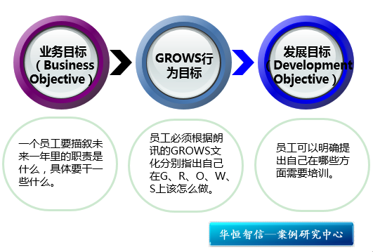 GROWS目标制定:每个员工通过制定GROWS行为目标,来强化对朗讯文化的把握和具体执行。