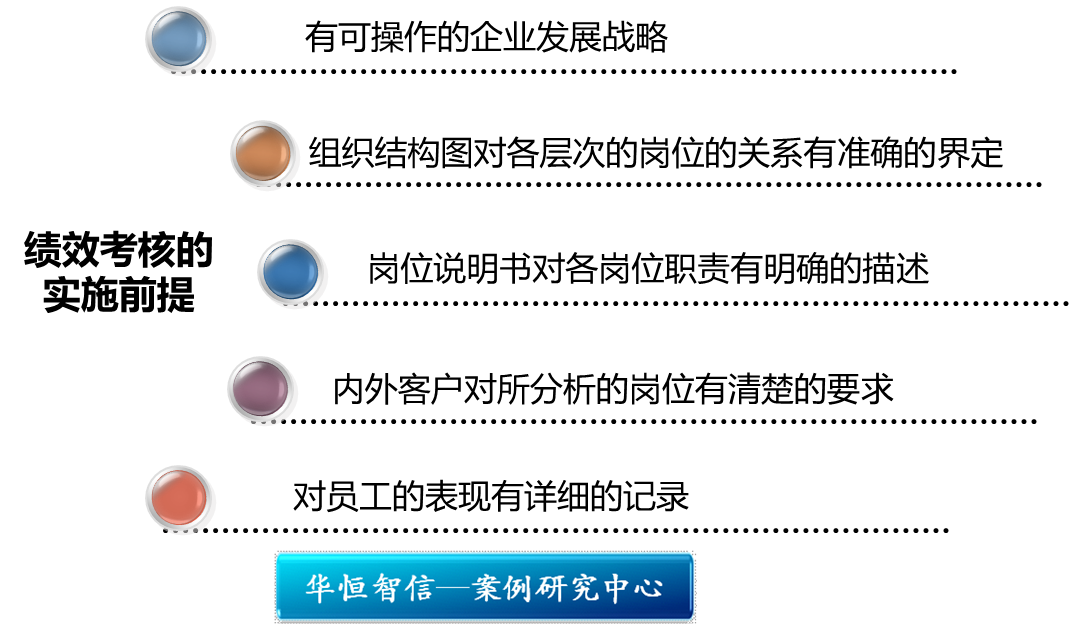 一般而言,以下五个方面的条件是实施考核前必须要具备的。